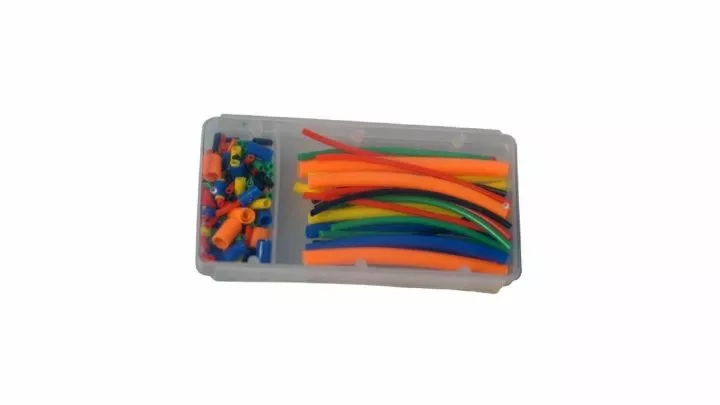 Handig doosje met een groot assortiment ringen en slangen. In verschillende diameters. Te gebruiken als topslang of dobberringen.